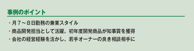 「炊き込みご飯のもとは、女性二人とプロジェクトチームを作り開発しました。現地で開発や試作を行い、東京にいる間もWEB会議で進捗をチェックして指示を出せるので、遠隔がネックになることはありませんでした」。ひろの屋と神山氏のこの関係については、中小企業庁が今年3月にまとめた「中小企業・小規模事業者における中核人材確保ガイドブック」において、モデル事例として取り上げられている。