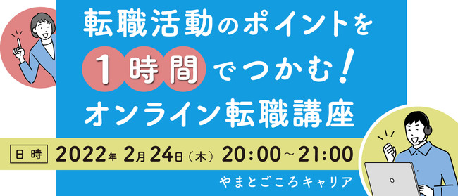 インバウンド専門の求人サイト「やまとごころキャリア」を運営する、株式会社やまとごころキャリア(本社:東京都千代田区、代表取締役:磯部武秀)は、2022年2月24日に「転職活動のポイントを1時間でつかむ!オンライン転職講座」を開催いたします!